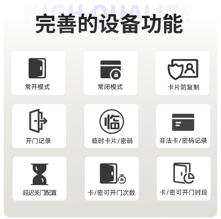 南通这款智能门锁提供室内门锁和防盗门锁两种选择,其中室内门锁尺寸为 2806521mm,适配 5050 锁体;防盗门锁尺寸为 3657021mm,适配 6068 锁体,可满足不同场景的安装需求。它采用铝合金一体成型搭配钢化玻璃面板打造,兼具坚固耐用的品质与简洁美观的视觉效果。门锁支持蓝牙无线通讯,解锁方式丰富多样,密码、卡片、蓝牙、钥匙四种方式随心选择,满足不同使用习惯与应急需求。其工作温度范围为 - 20~70℃,能适应多数地区的气候条件,采用碱性电池供电,安装更换便捷,是兼具安全性与实用性的门锁选择。